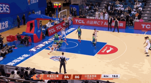 CBA常规赛第五轮,四连败的天津男篮主场对阵四连败的江苏男篮,比赛还剩1分19秒,天津男篮一波9比0将比分追至82比82。