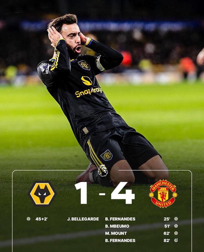 2025年12月09日 3轮不败升第6!曼联4-1狼队 B费2射1传姆伯莫芒特破门狼队15轮0胜