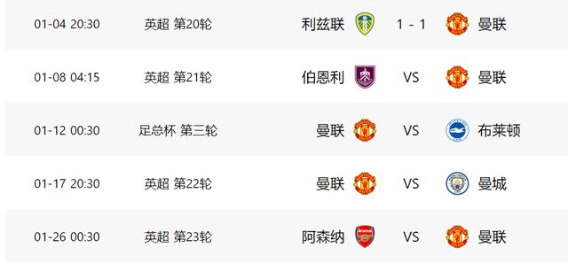 2026年01月04日 5轮仅1胜!曼联1-1利兹联 库尼亚破门齐尔克泽献助攻舍什科失良机